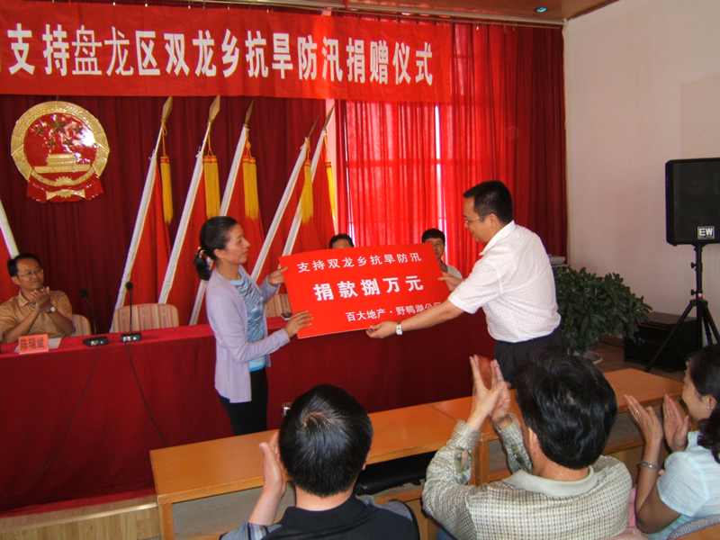 會上,商務(wù)局副局長黃焰與昆百大黨委書記、工會主席張敏為竹山鎮(zhèn)干塘子村委會送上了壹萬元的扶貧慰問金,村委會王書記代表村民接受慰問金,并感謝商務(wù)局領(lǐng)導(dǎo)和昆百大企業(yè)的關(guān)心與幫助。昆百大集團(tuán)張敏書記表示:昆百大集團(tuán)作為云南省商貿(mào)業(yè)的第一家上市公司,將在昆明市商務(wù)局的領(lǐng)導(dǎo)下,繼續(xù)在力所能及范圍內(nèi)承擔(dān)起應(yīng)盡的社會責(zé)任。
